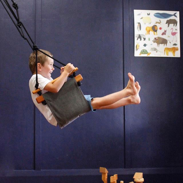 Solvej Child Swings is a safe and comfortable swing for young children and adults alike. It can be used indoors or out and is easily moved between the two. As a kids swing it is ideal for children to "tummy swing" on.